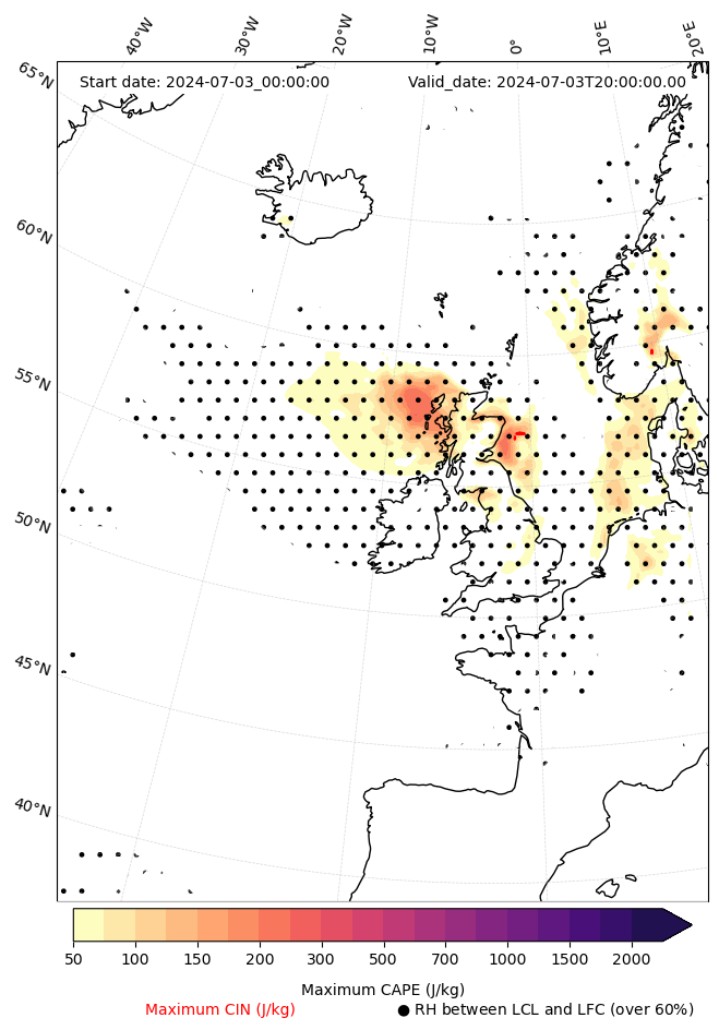- Maximum CAPE (J/Kg)