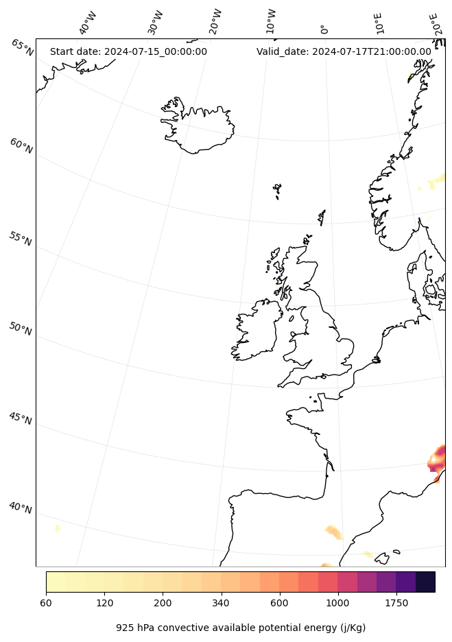 - Maximum CAPE (J/Kg)
