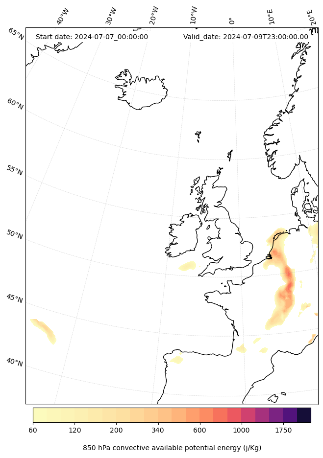 - Maximum CAPE (J/Kg)