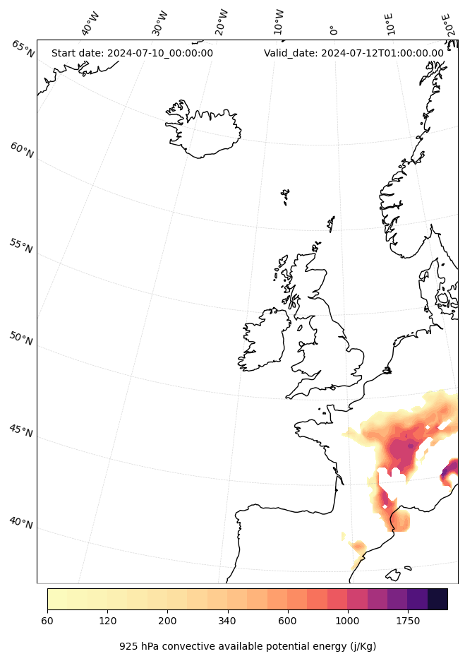 - Maximum CAPE (J/Kg)