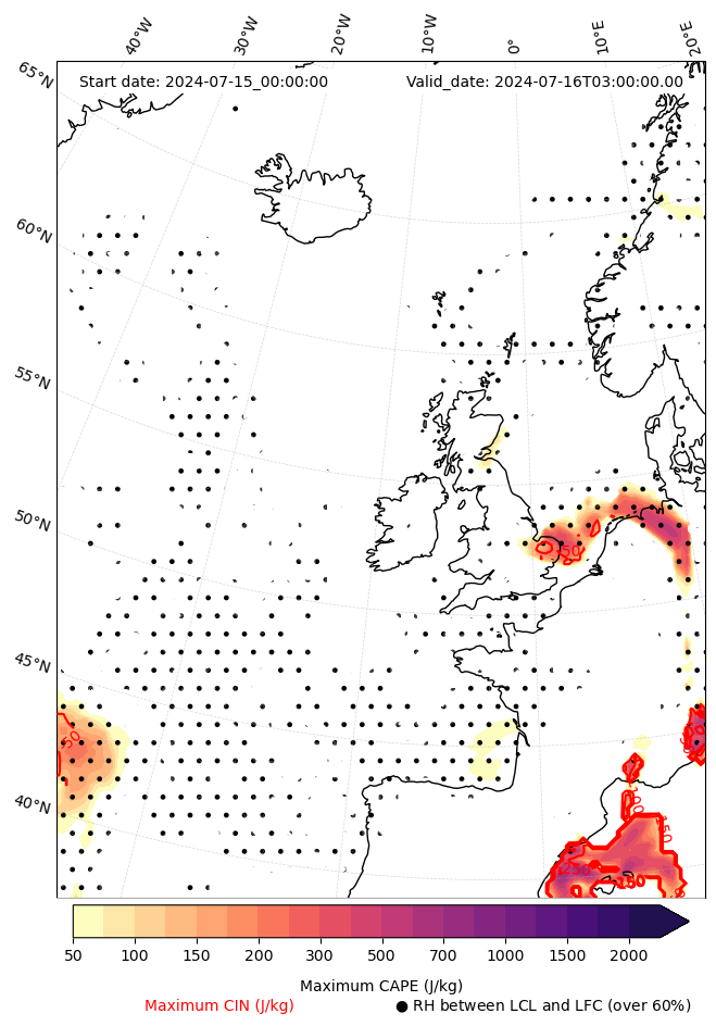 • Maximum CAPE (J/Kg)