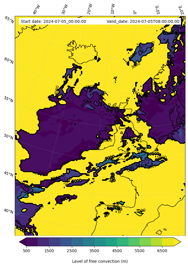 - Level of free convection (m)