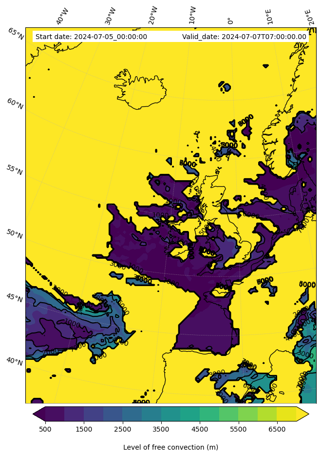 - Level of free convection (m)