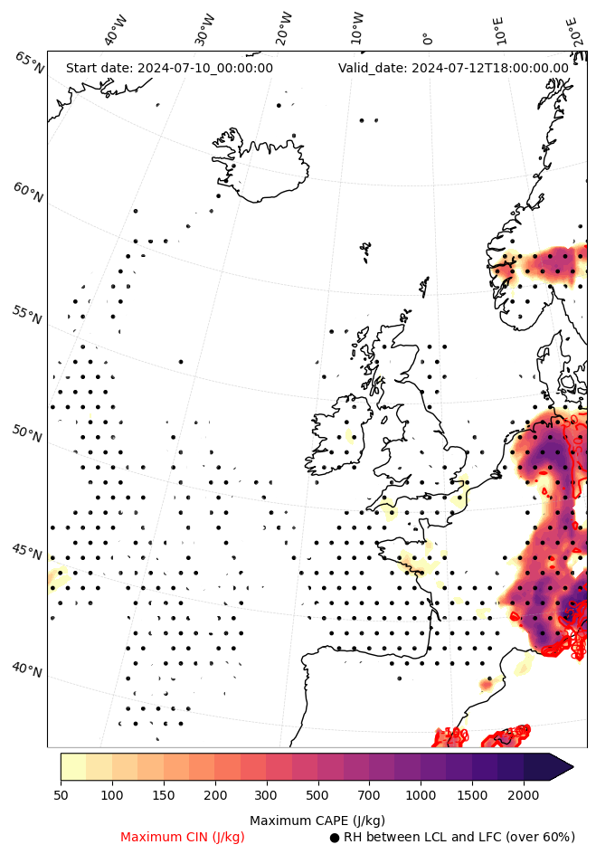 • Maximum CAPE (J/Kg)
