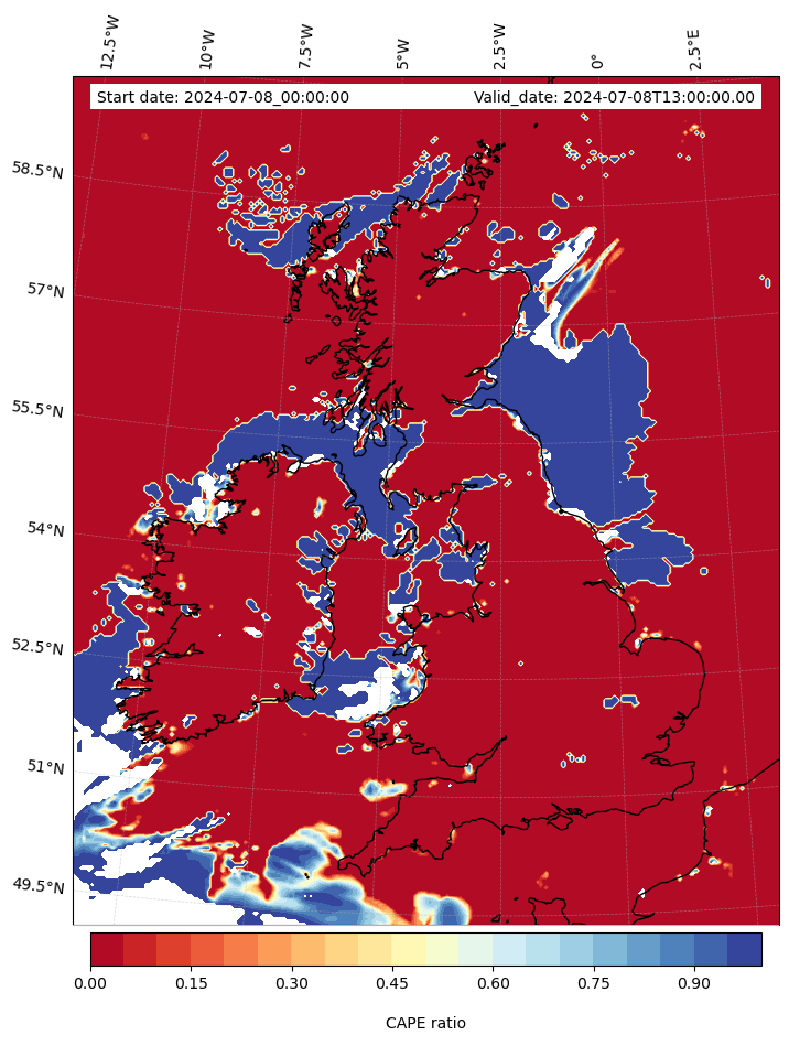 - Maximum CAPE (J/Kg)