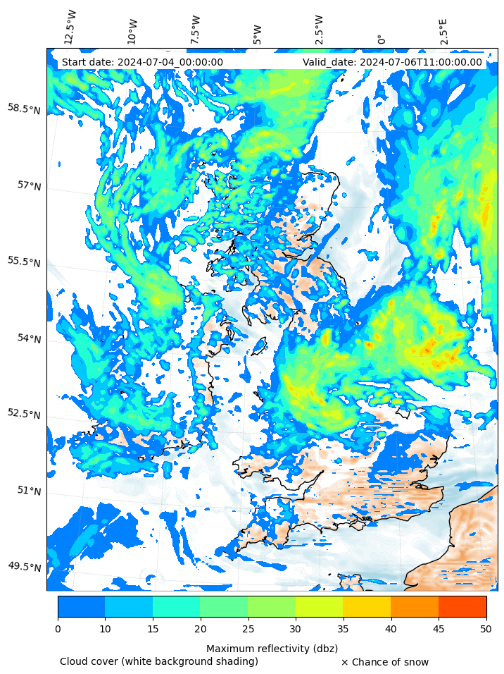 - Snow mixing ratio (g kg¯¹)