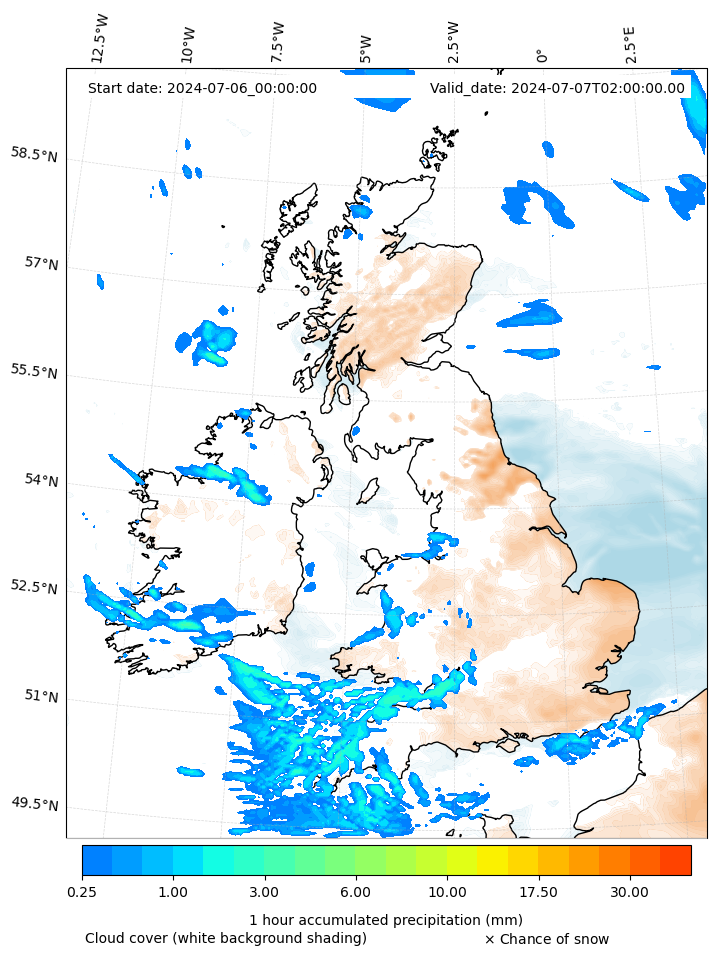 - Snow mixing ratio (g kg¯¹)