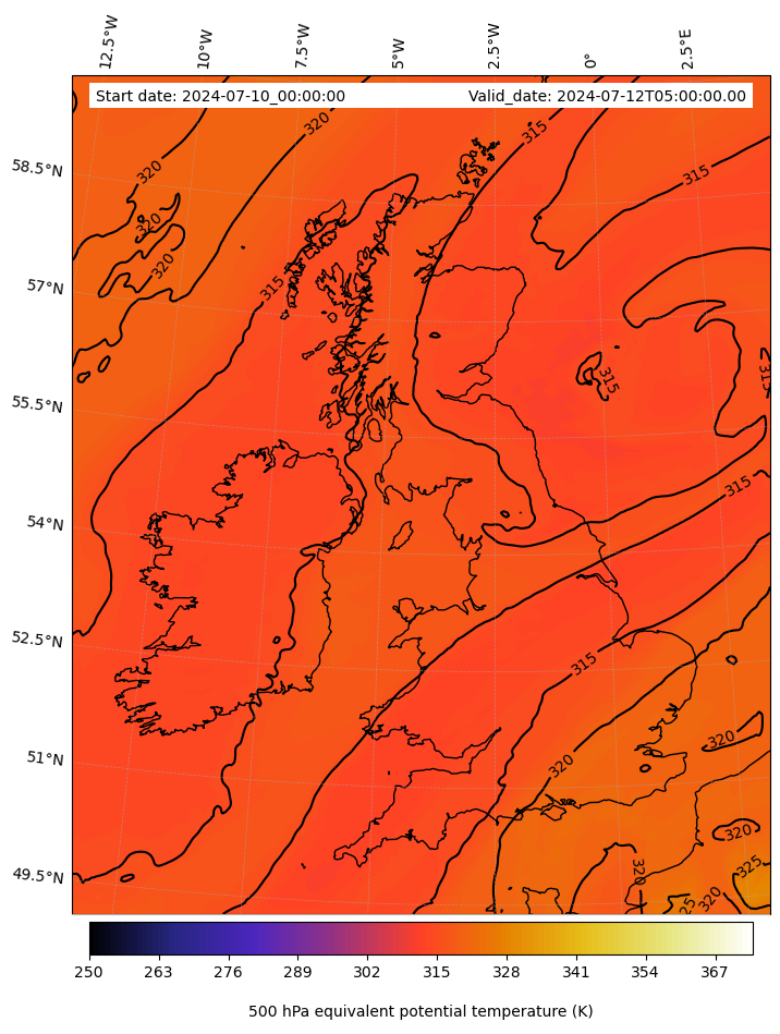 - Equivalent Potential Temperature (K)