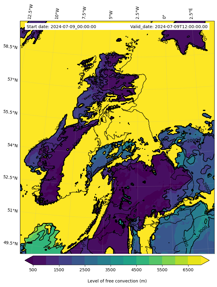 - Level of free convection (m)