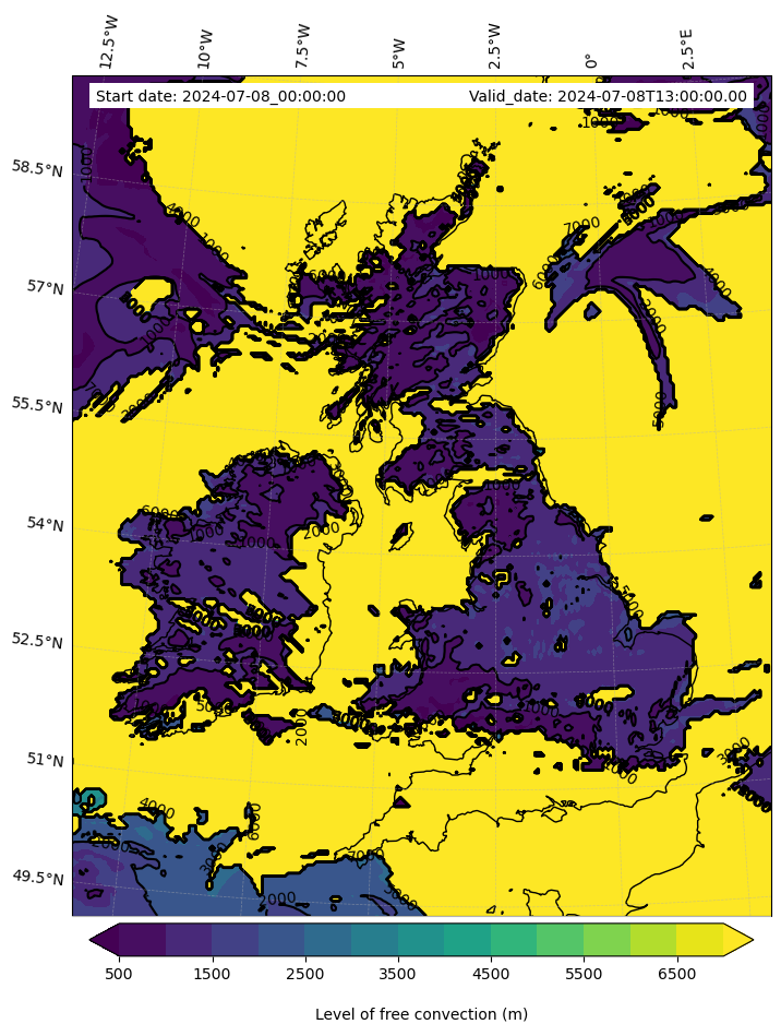 - Level of free convection (m)