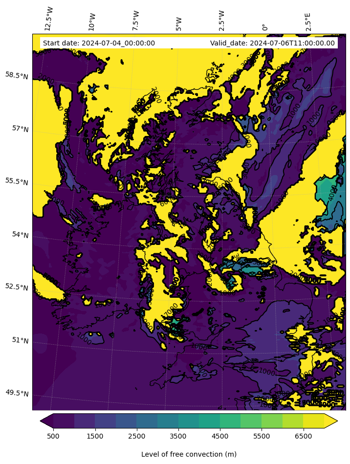 - Level of free convection (m)
