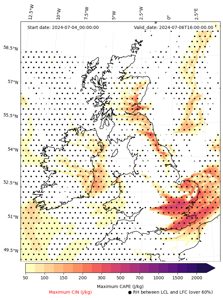 • Maximum CAPE (J/Kg)