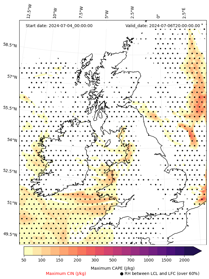 - Maximum CAPE (J/Kg)