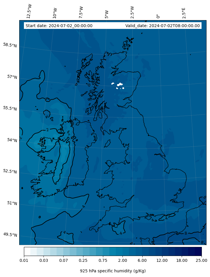 - Water vapor mixing ratio (g kg¯¹)