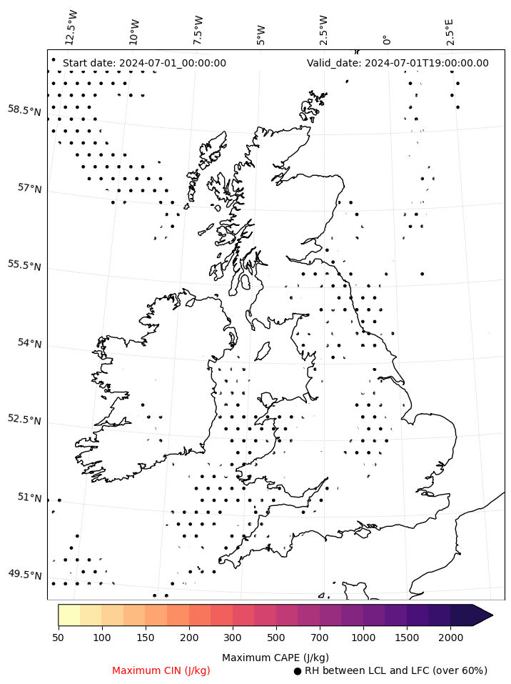 - Maximum CAPE (J/Kg)