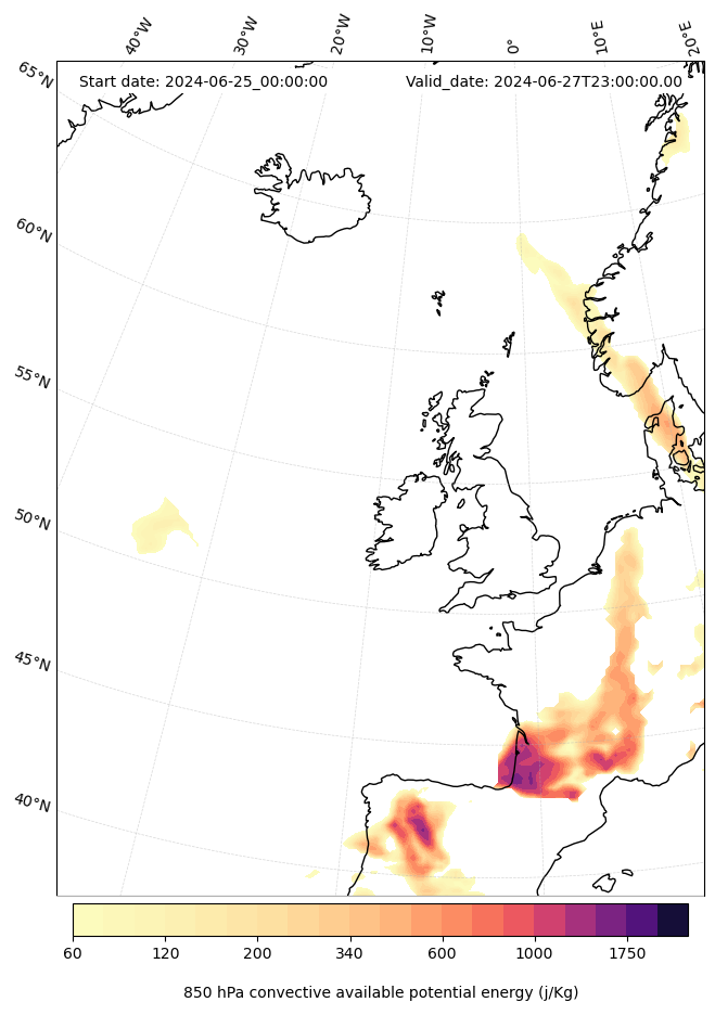 - Maximum CAPE (J/Kg)