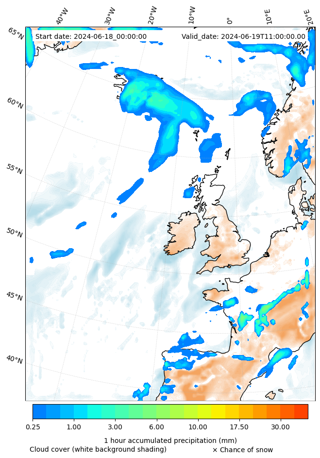 - Snow mixing ratio (g kg¯¹)