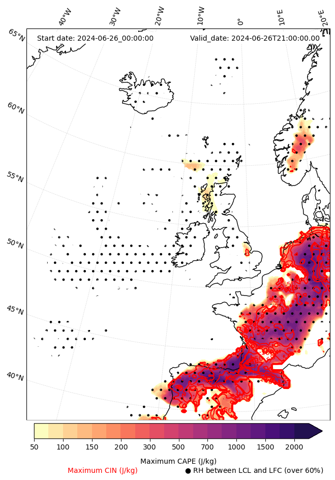 - Maximum CAPE (J/Kg)