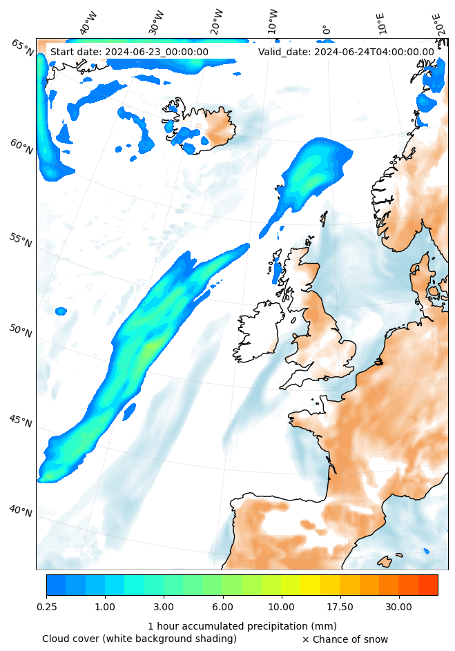 - Snow mixing ratio (g kg¯¹)
