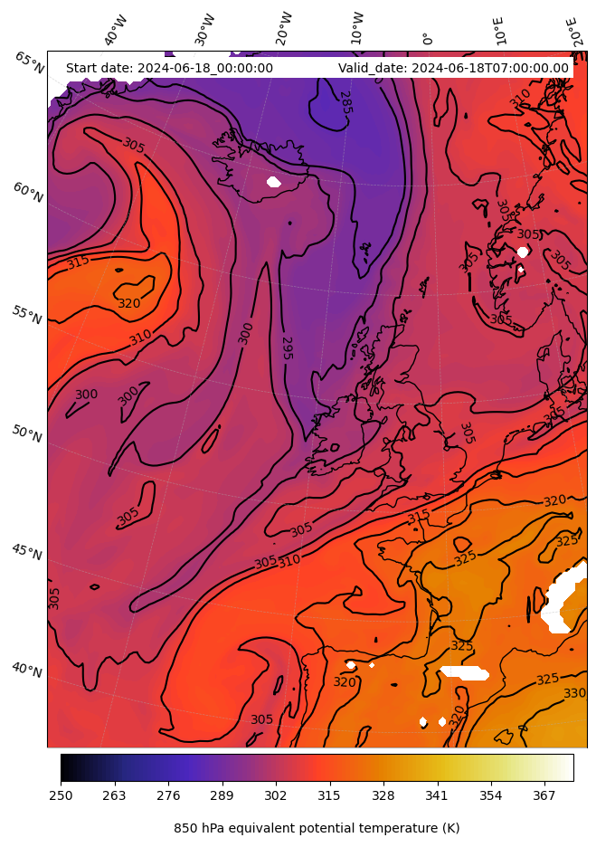 - Equivalent Potential Temperature (K)