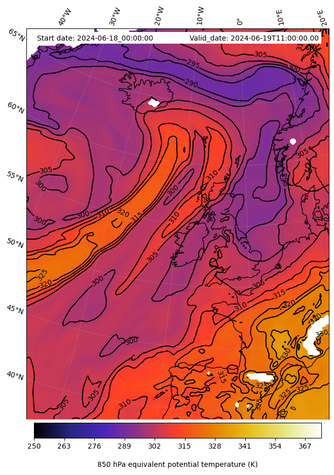 - Equivalent Potential Temperature (K)