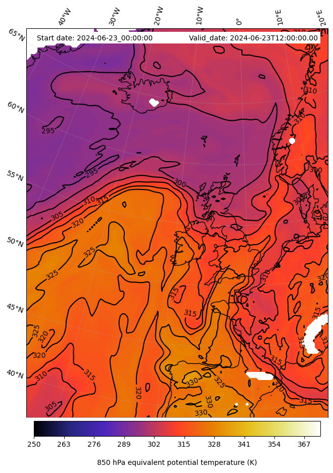 - Equivalent Potential Temperature (K)