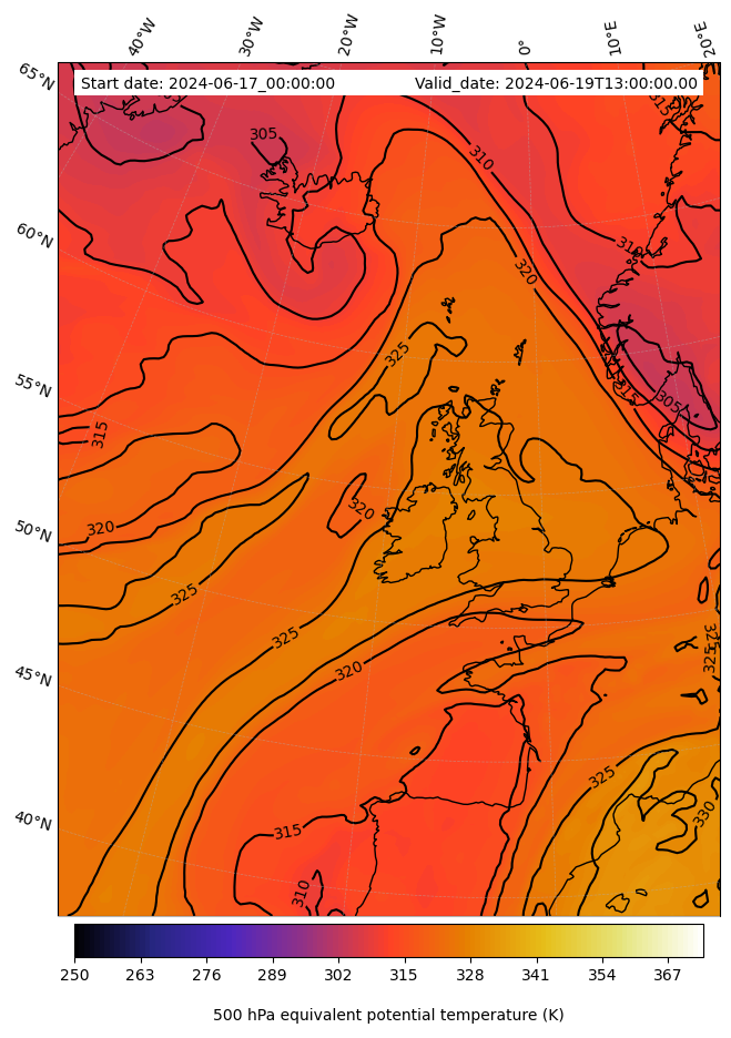 - Equivalent Potential Temperature (K)