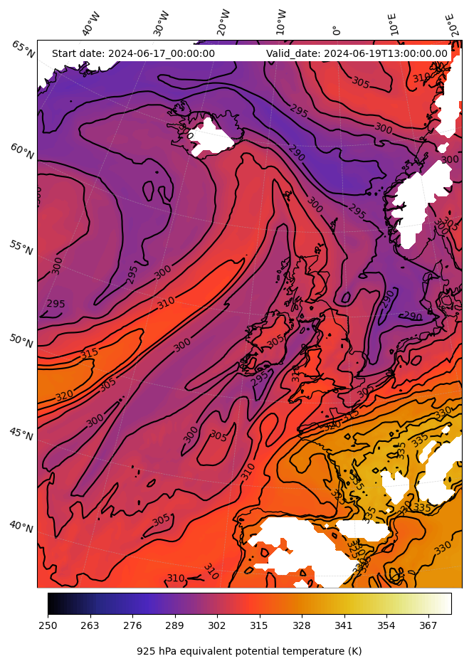 - Equivalent Potential Temperature (K)