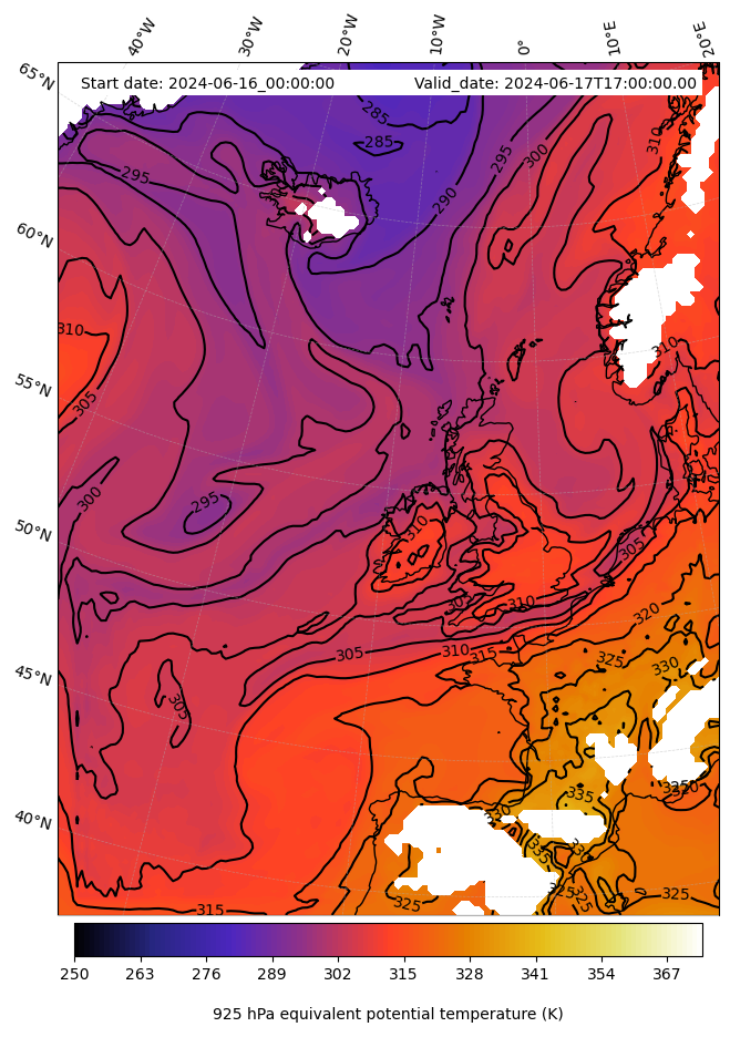 - Equivalent Potential Temperature (K)