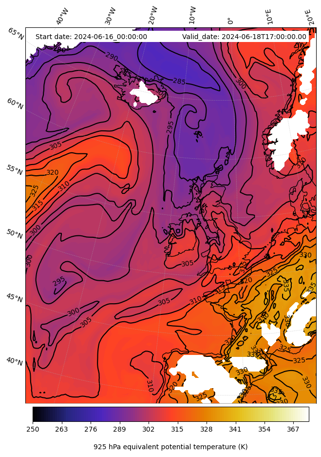 - Equivalent Potential Temperature (K)