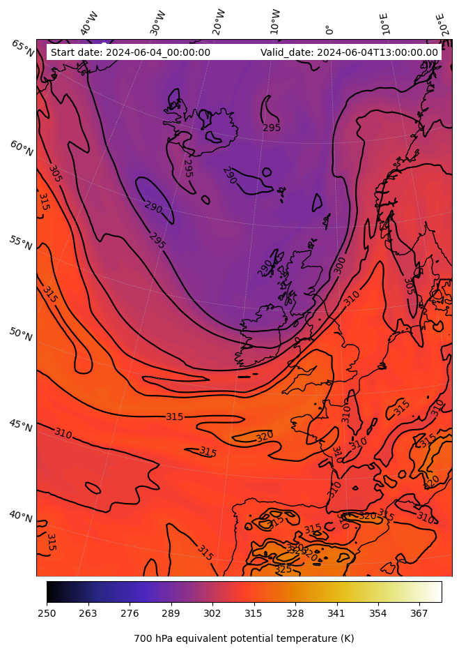 - Equivalent Potential Temperature (K)