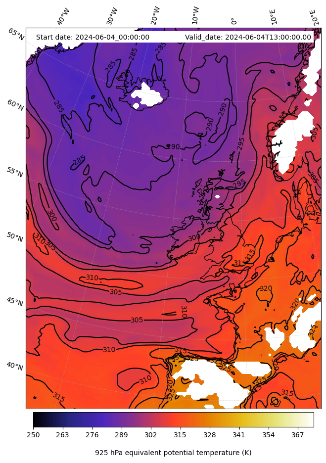 - Equivalent Potential Temperature (K)