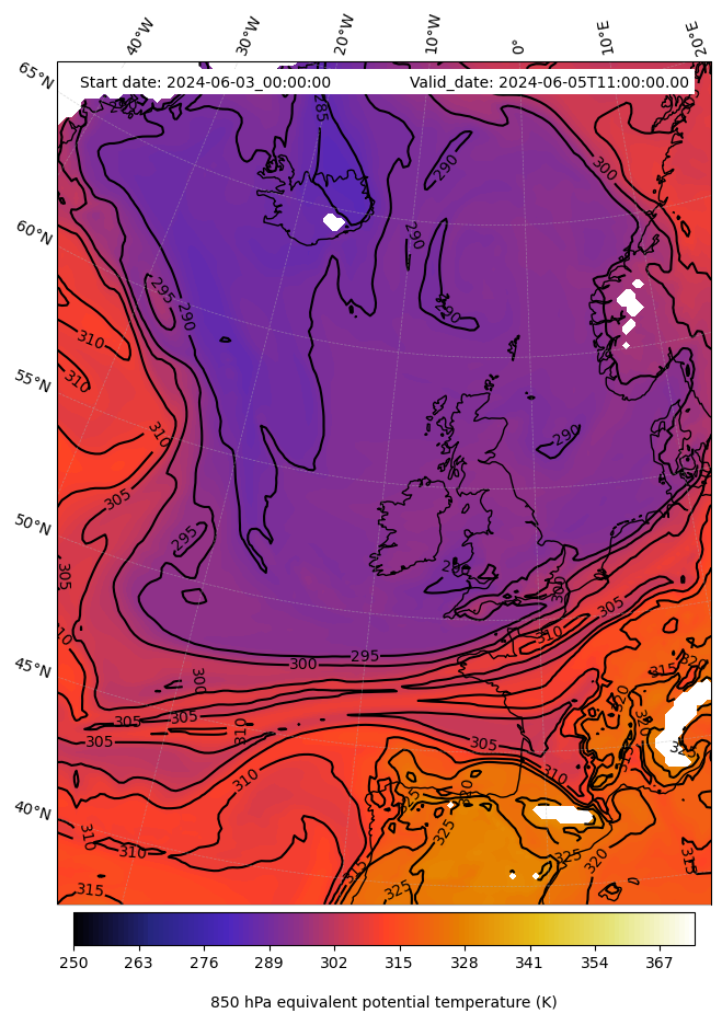 - Equivalent Potential Temperature (K)