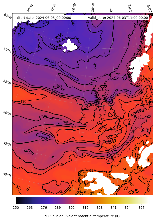 - Equivalent Potential Temperature (K)