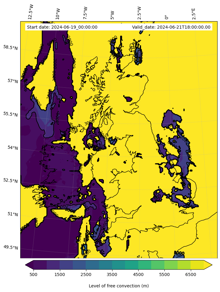 - Level of free convection (m)