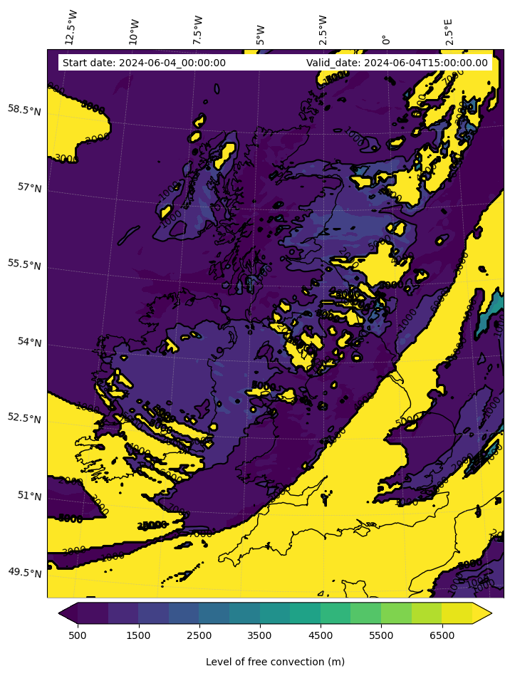• Level of free convection (m)