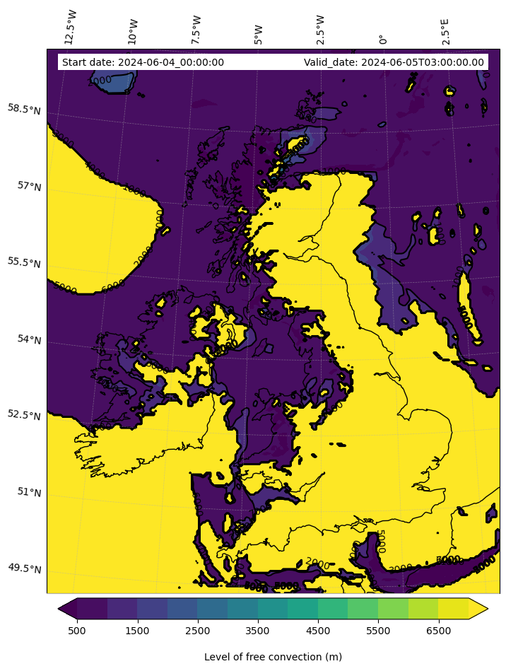 • Level of free convection (m)