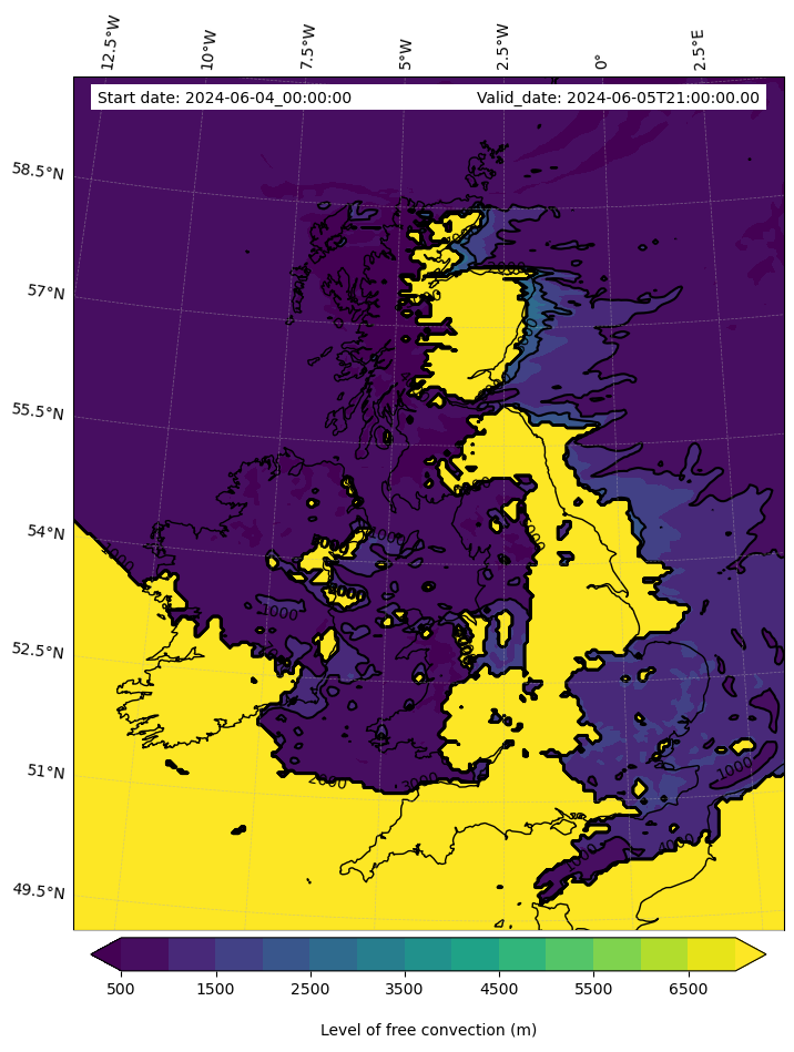 • Level of free convection (m)