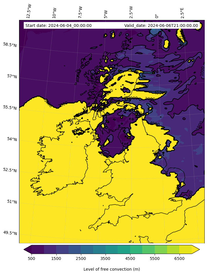 • Level of free convection (m)