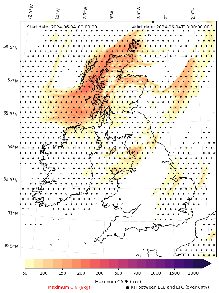 - Maximum CAPE (J/Kg)