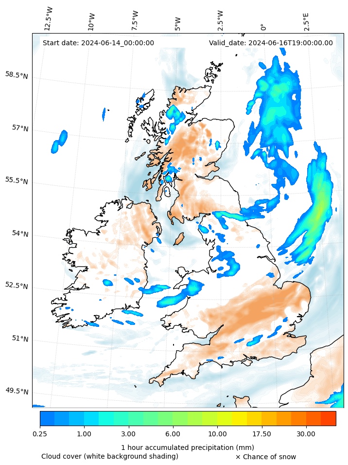 - Snow mixing ratio (g kg¯¹)