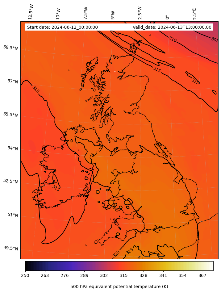 - Equivalent Potential Temperature (K)