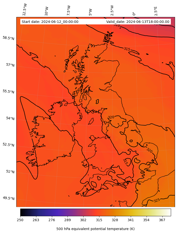- Equivalent Potential Temperature (K)