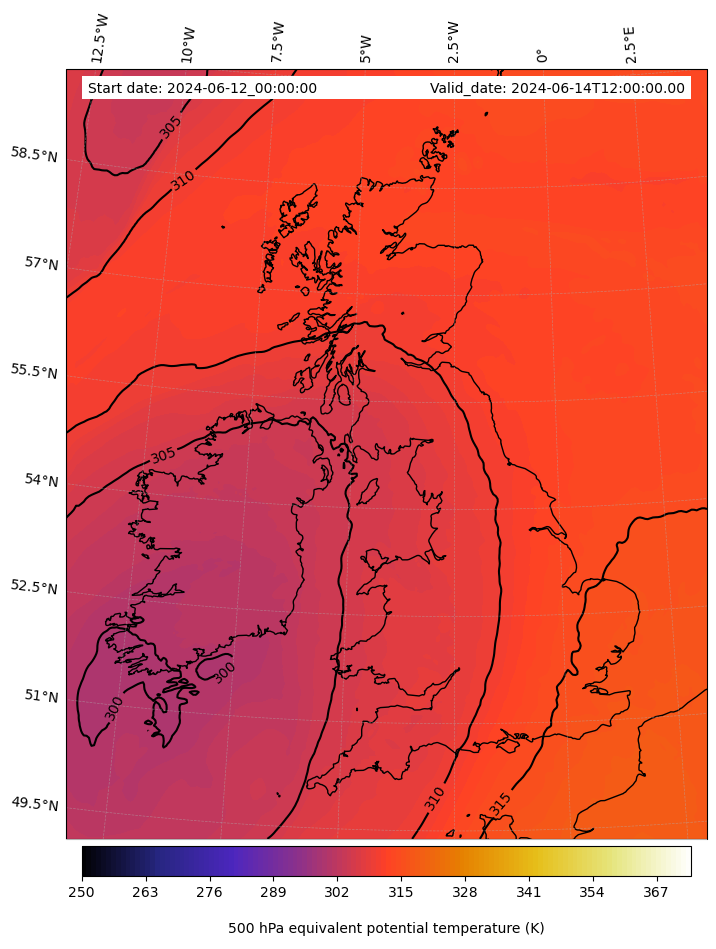 - Equivalent Potential Temperature (K)