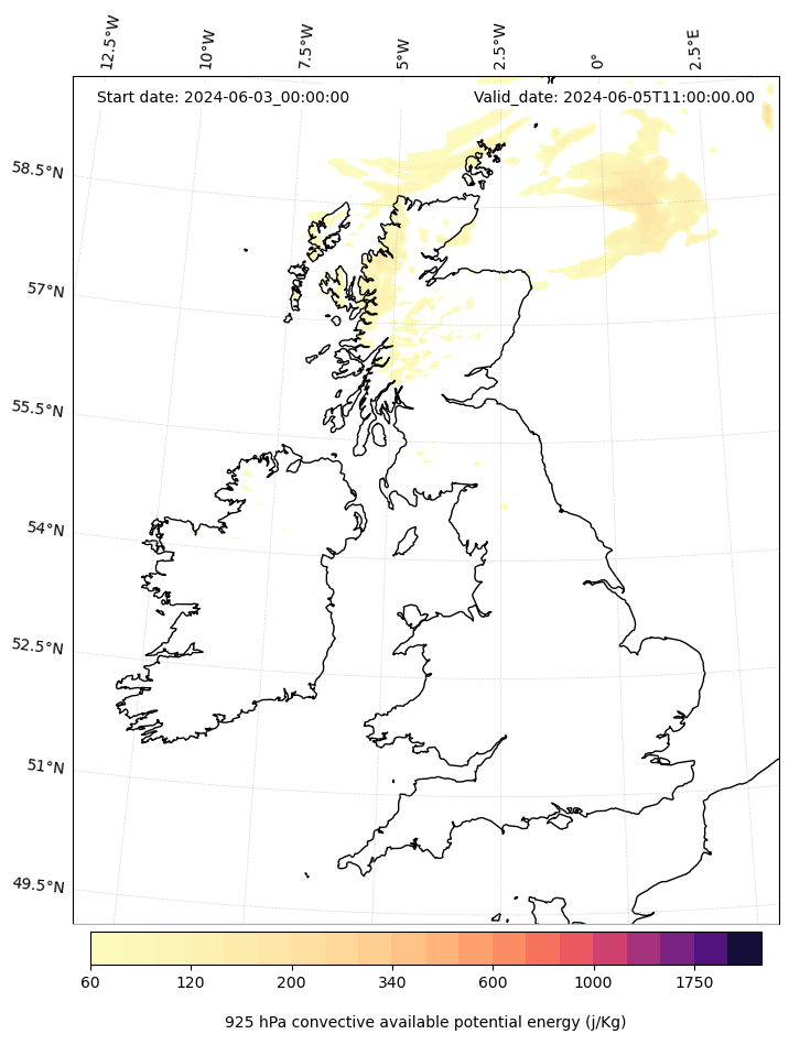 - Maximum CAPE (J/Kg)