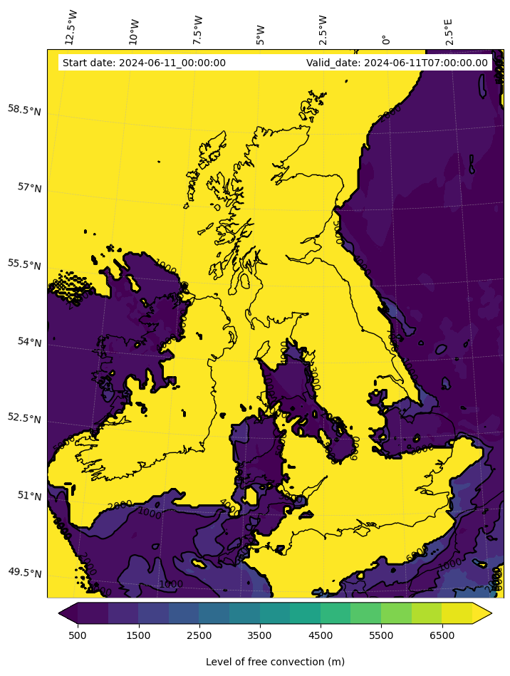 - Level of free convection (m)