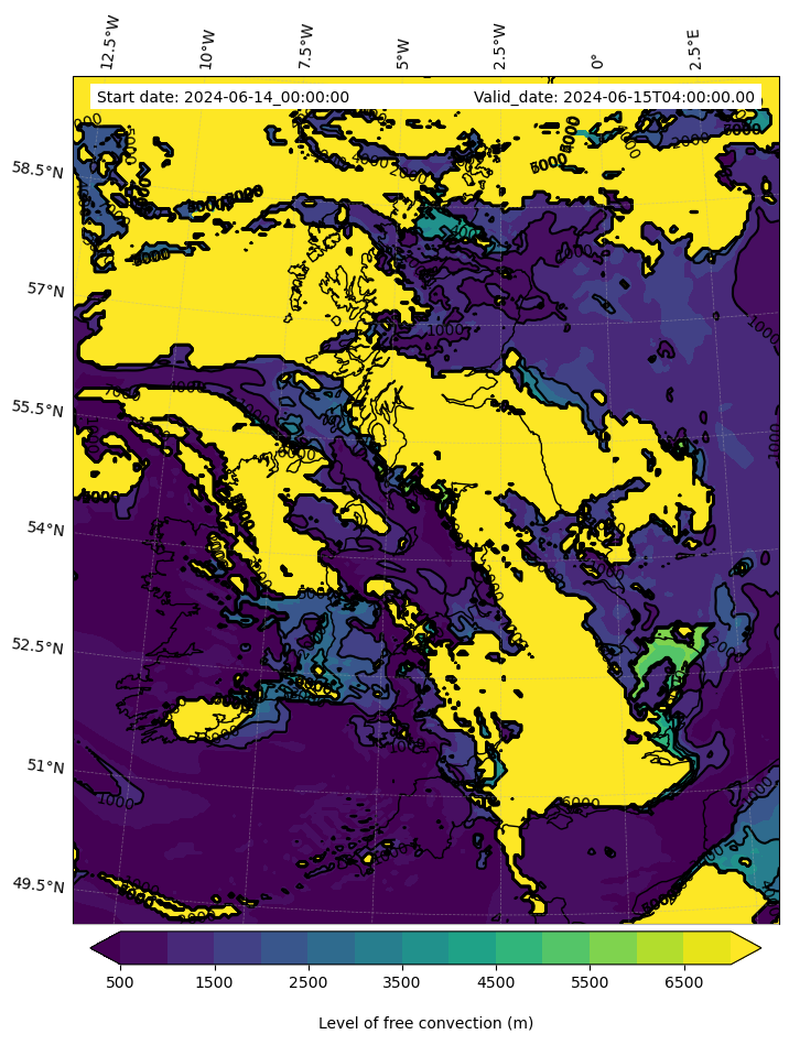 - Level of free convection (m)