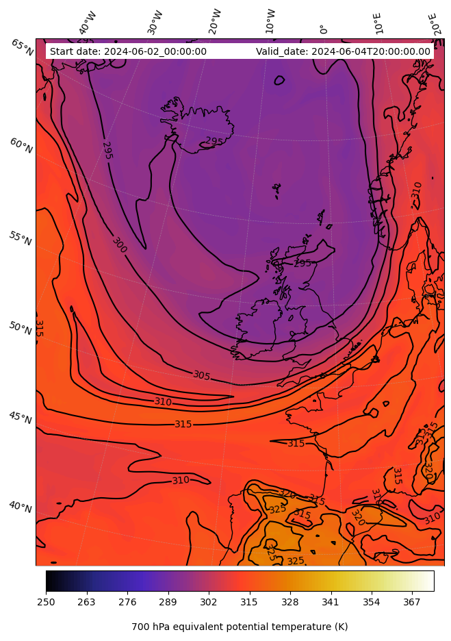 - Equivalent Potential Temperature (K)