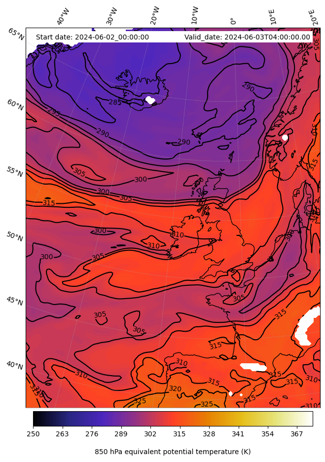 - Equivalent Potential Temperature (K)