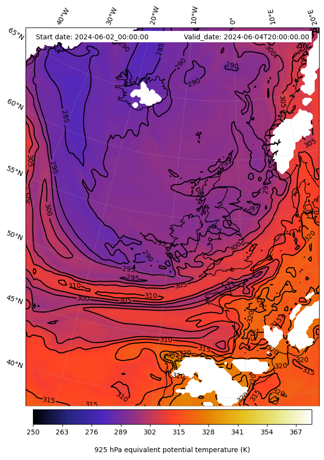- Equivalent Potential Temperature (K)